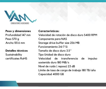 DIsco Duro para NAS Western Digital WD Red 3.5″ de 1 a 8 Bahías, 4TB, SATA III, 6 Gbit/s, 5400RPM, 256MB Cache