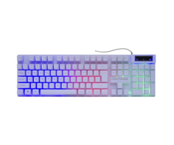 +Longitud del cable: 1.5m +Luz RGB Teclado: +Alimentación: 5Vcc 1A +Numero de teclas: 104 +Luz tipo Rainbow Tapete: +Dimensiones: 300 x 250 x 30mm Materiales: +Caucho natural: 50% +Carbonato de calcio: 40% +Elastano: 10%