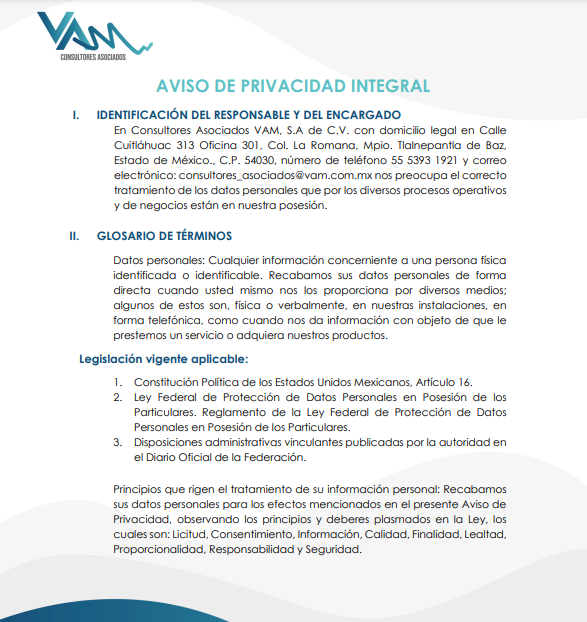 Una vez concluida la solicitud el tiempo de respuesta vía correo electrónico por parte de Consultores VAM será de 24 horas como máximo, en caso de que no se reciba respuesta, deberá comunicarse al 55-53-93-19-21 o enviar mensaje de Whats App al 56-32-36-44-62, para dar seguimiento a su solicitud.
